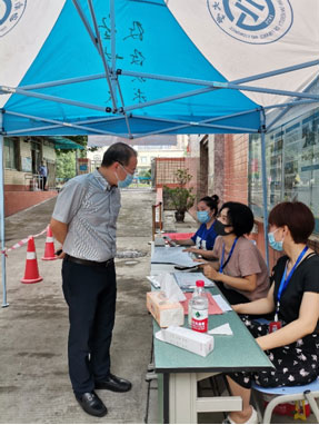6月16日,李永强副校长在学院“学生咨询区”检查和指导结业生返校现场工作。