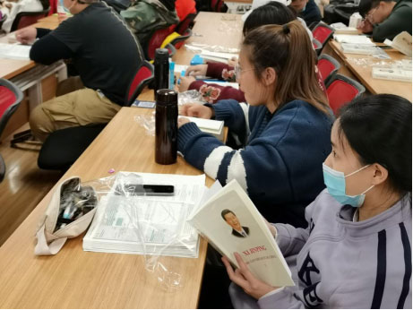培训学院国际业务部范佳宇老师主持了本次主题研讨会。她阐述了贯彻落实习近平新时代中国特色社会主义思想的重要性,带领同学们学习了“坚持和发展中国特色社会主义、实现中华民族伟大复兴的中国梦、全面深化改革”等十八个主题的内容;同时,她还分享了自己的留学经历,让同学们更直观的感受到祖国是我们身处异乡时的坚实后盾和精神支柱。最后,她预祝各位同学在今后人生道路上,明德励志,求知笃行,以梦为马,不负韶华。